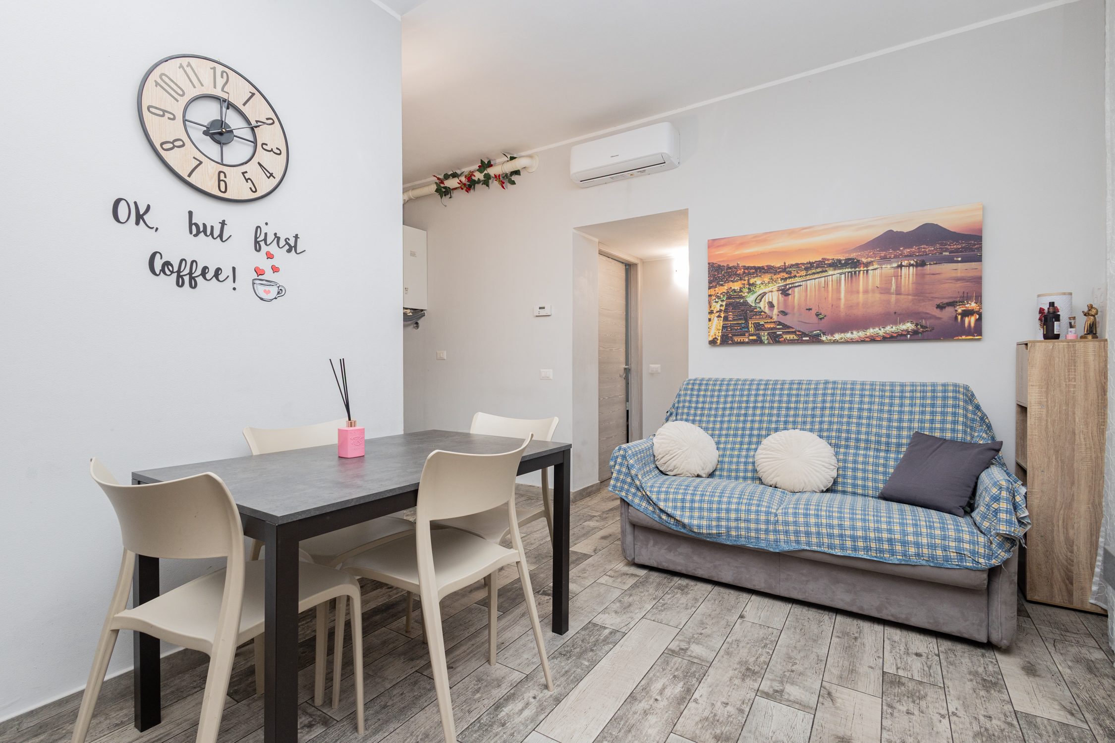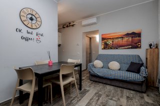 Alla zona giorno accediamo dall'ingresso sul soggiorno con cucina a vista, ottimamente organizzato.