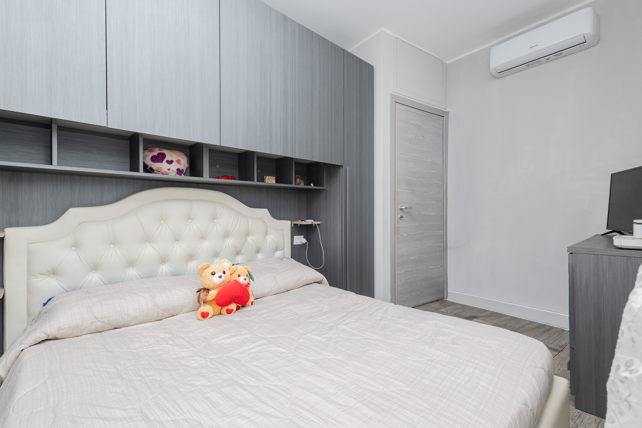 La zona notte è composta da camera matrimoniale e cameretta, ideali per garantire privacy e funzionalità che si completa con un bagno moderno e rifinito.