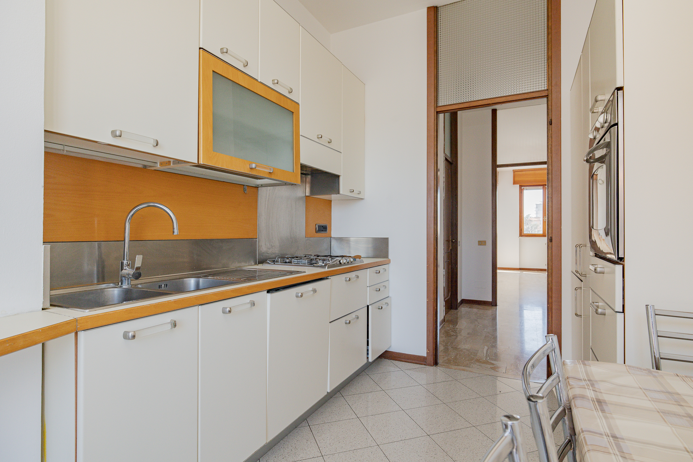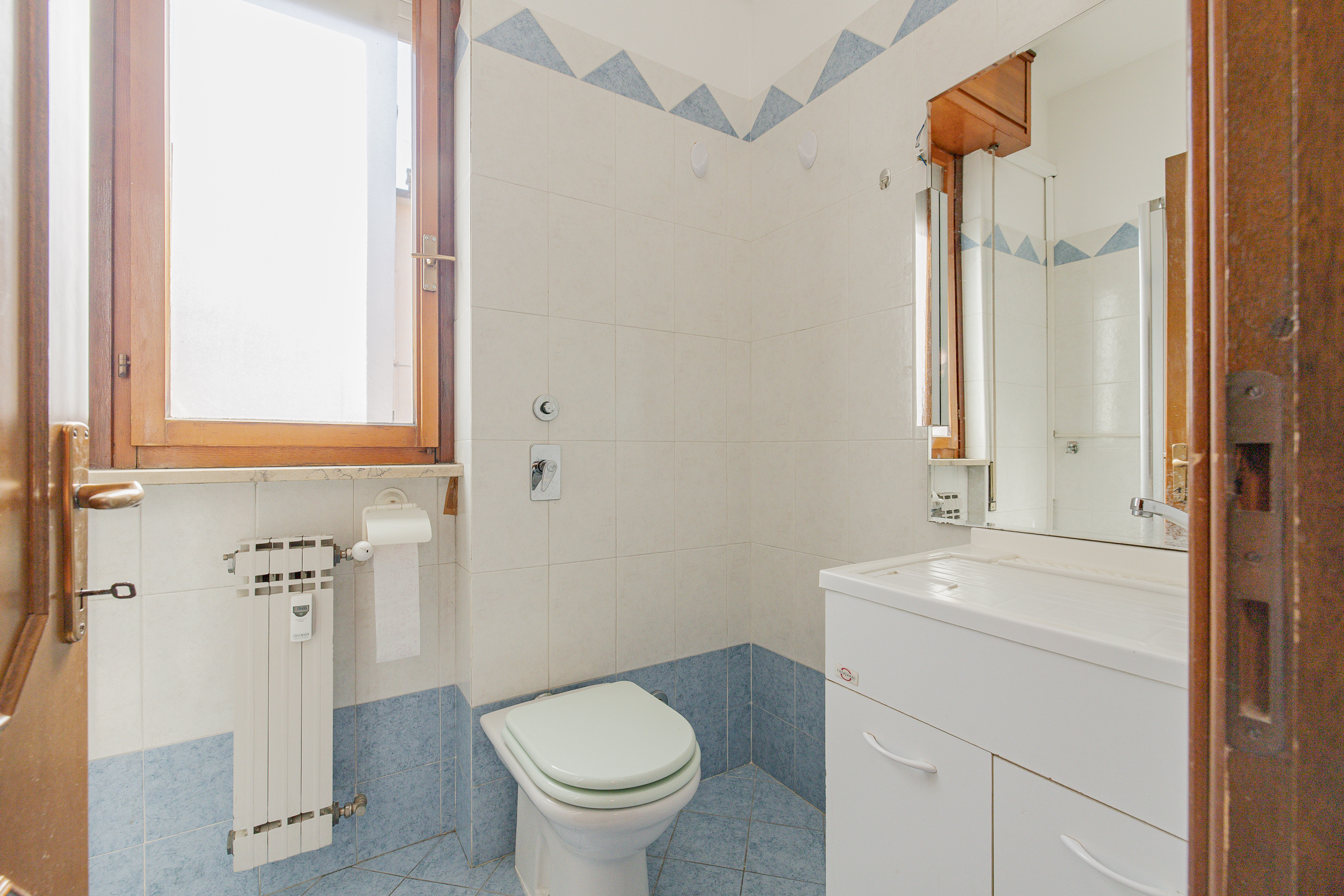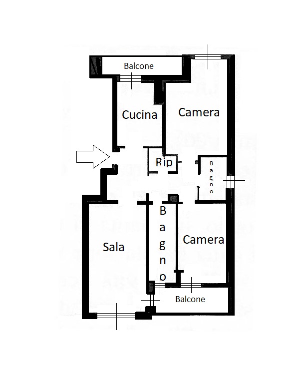 In condominio che é stato oggetto di opere di efficientamento energetico, appartamento composto da ingresso, cucina abitabile, soggiorno, due camere, due bagni entrambi finestrati, ripostiglio e due balconi.